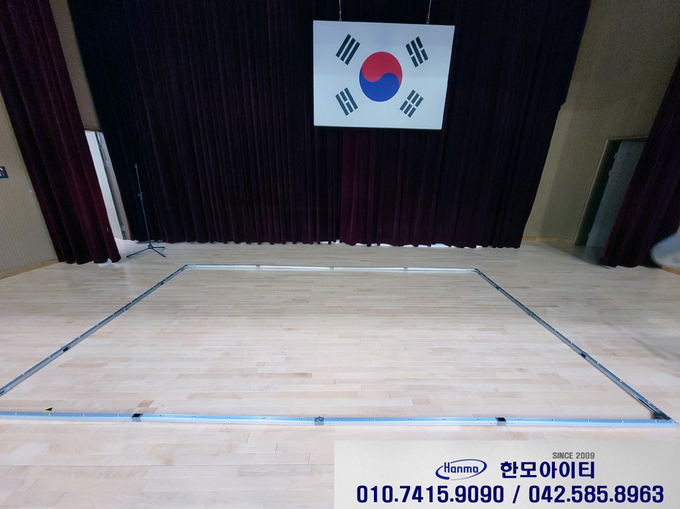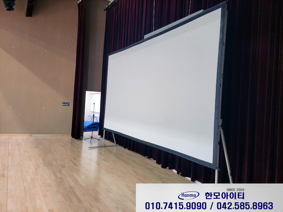 가로 2.65 세로 1.5 미터 정도의 화면 출력이 가능한 스크린입니다