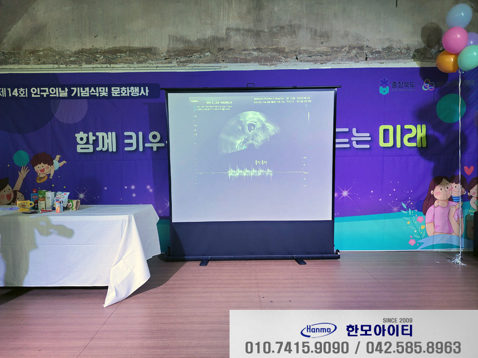 대전 한모아이티에서 렌탈 임대 대여한 100인치 필름형 이동 스크린에